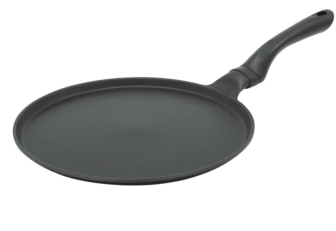 Die Crêpes Pfanne "Delta" aus Aluguss ist perfekt geeignet, um leckere Crêpes gesund und fettarm zuzubereiten. Die hochwertige Antihaftversiegelung GREBLON® NON-STICK C2+ sorgt dafür, dass der Crêpes nicht am Boden kleben bleibt und die optimale Wärmespeicherung und Hitzeverteilung lässt den Crêpes gleichmäßig backen. Zusätzlich lässt sich die Pfanne einfach per Hand reinigen und eignet sich nicht für den Geschirrspüler. Bodenstärke ca. 5 mm, Materialstärke ca. 2,2 mm, geeignet für alle Herdarten, auch für Induktion.