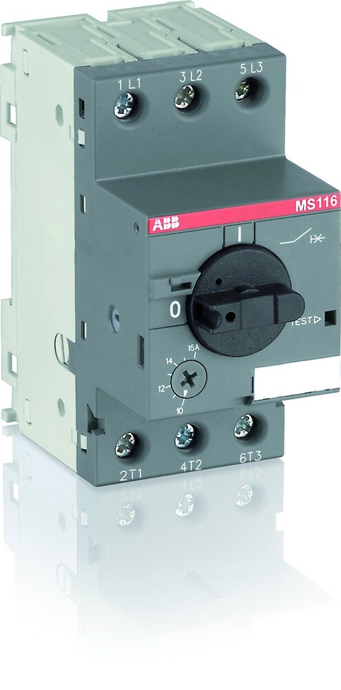 Motorschutzschalter MS116 mit thermischem und elektromagnetischem Schutz steht für die kompakte und wirtschaftliche Baureihe für den Motorschutz bis 15 kW (400 V) mit einer Modulbreite von 45 mm. Das temperaturkompensierte Gerät hat eine Drehgriffbedienung mit einer klaren Schaltstellungsanzeige I/0. Der Drehgriff ist mit Hilfe einer Abschließvorrichtung in 0-Position verriegelbar. Hilfs- und Signalkontakte sowie Unterspannungs- und Arbeitsstromauslöser können ohne Werkzeug angebaut werden. 3-Phasen-Schienen für 65 A bzw. für 100 A und Einspeiseblöcke für 25 mm2 bzw 35 mm2 erlauben die gemeinsame Einspeisung mehrerer Motorschutzschalter. Schutzgehäuse sowie Zubehör für Schaltschrank- und Türeinbau ergänzen das Sortiment.