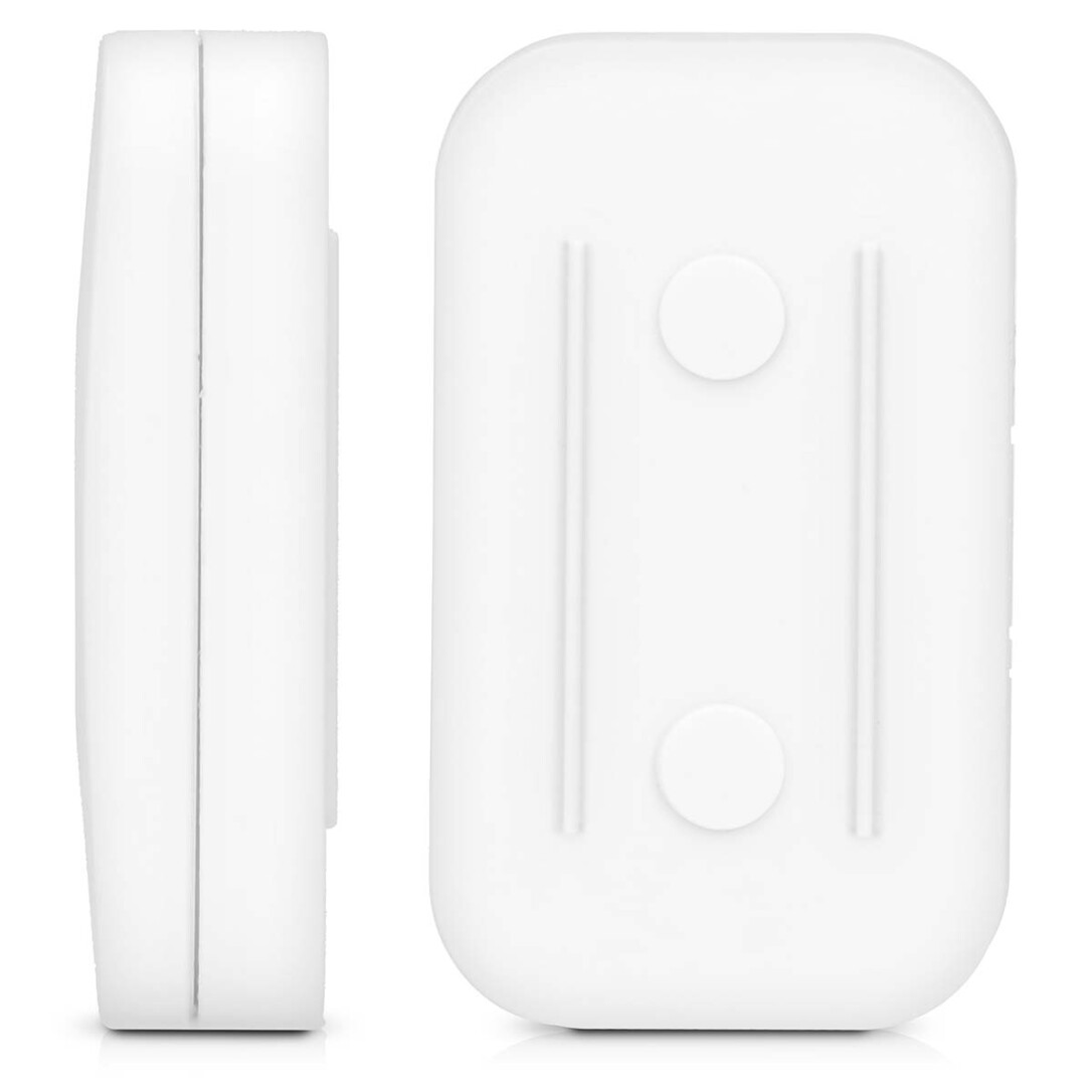 Die Alecto ADB20 ist eine kabellose Türklingel, die ganz ohne Stromkabel auskommt. Die Installation ist kinderleicht: Kleben Sie die wasserfeste Türklingel einfach an Ihre Haustür. Die Innenklingel ist drahtlos mit der Türklingel verbunden und kann überall im Haus angebracht werden.Gibt es Bereiche im Haus, in denen die Türklingel schwer zu hören ist?Erweitern Sie die ADB20 mit bis zu sechs Innenklingeln und platzieren Sie diese an verschiedenen Stellen im Haus.Die Klingel hat eine Reichweite von bis zu 50 Metern, sodass Sie sie auch auf dem Dachboden oder im Keller platzieren können. Im freien Feld, ohne Hindernisse wie Wände, Geräte usw., beträgt die Reichweite bis zu 200 Meter.Um Fehlfunktionen zu vermeiden, arbeitet die ADB20 mit einem codierten Signal.Sowohl die Türklingel als auch die Innenklingel werden mit Batterien betrieben, sodass die Installation kinderleicht ist. Die Alecto ADB20 wird inklusive Montagematerial geliefert.Natürlich ist es wichtig, dass Sie beim Klingeln einen angenehmen Klingelton hören. Sie können daher zwischen 52 Melodien wählen. Die Lautstärke der weißen Türklingel lässt sich zudem in fünf Stufen (zwischen 0 dB und 110 dB) einstellen. So hören Sie die Türklingel überall im Haus laut und deutlich.Lieferumfang:Funktürklingel