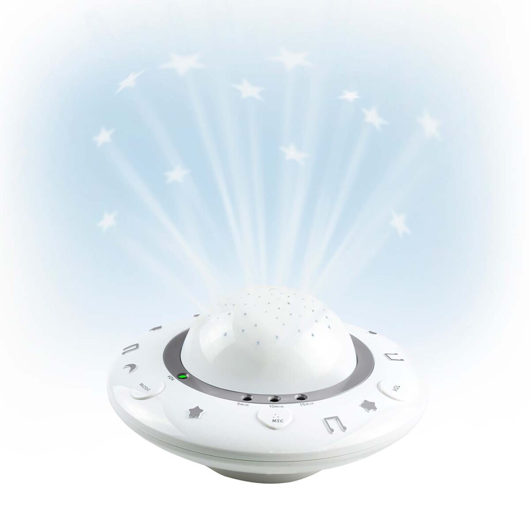Schnell Einschlafen mit dem BC-125GS SternenprojektorWie alle Kinder, ist auch Ihr Baby von Bildern und Geräuschen fasziniert. Mit leiser Musik und schönen Bildern spenden Sie Ihrem Kind Trost und Ruhe. Mit dem BC-125GS Sternenprojektor zaubern Sie wunderschöne und farbenfrohe Bilder an die Decke des Kinderzimmers, während beruhigende Schlaflieder durch das Zimmer klingen. So wird müheloses Einschlafen zur festen Gewohnheit. Vorteile des BC-125GS Sternenprojektors:• der batteriebetriebene Projektor kann überall aufgestellt werden
