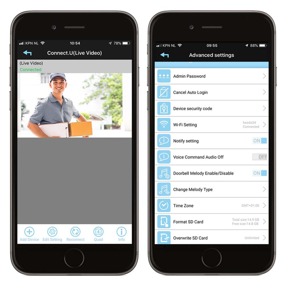Sehen Sie, wer vor der Tür steht, ohne die Tür zu öffnen, mit der Alecto DVC600IP. Mit dieser Video-Türklingel mit Kamera und WLAN können Sie sehen, wer an der Tür klingelt, egal wo Sie sind. Über die kostenlose App erhalten Sie sofort eine Benachrichtigung auf Ihrem Smartphone und/oder Tablet. Auch wenn Sie nicht zu Hause sind, können Sie über diese App mit der Person an der Tür sprechen.Die Alecto DVC600IP Video-Türklingel hat eine hervorragende HD-Bild- und Tonqualität (1080P). Sie können auch im Dunkeln ein klares und farbiges Bild sehen. Die Türklingel ist staub- und spritzwassergeschützt (IP55).Die Türklingel wird auch mit einer Innenklingel geliefert, an die Sie eine SD-Karte (bis zu 32 GB) anschließen können. Auf dieser Innenklingel können Sie alle Videobilder sicher speichern, sodass niemand außerhalb des Hauses Zugriff auf diese Bilder hat. Der Speicherplatz ist kostenlos, es fallen also keine Abos oder sonstige Kosten an.Die drahtlose Türklingel hat eine einfache Installation. Die App ist ebenfalls leicht zu installieren und kann sowohl auf iOS- als auch auf Android-Geräten kostenlos heruntergeladen werden. Bei Alecto legen wir großen Wert auf Sicherheit. Deshalb haben wir die Alecto DVC600IP Kamera in den Niederlanden entwickelt und umfassend testen lassen, um sicherzustellen, dass sie immer auf dem neuesten Stand ist.Neben der Benachrichtigung über die App hören Sie natürlich auch das Klingeln an der Haustür. Dabei können Sie zwischen drei verschiedenen Klingeltönen wählen. Die Innenklingel kann an einer beliebigen Stelle im Haus platziert werden, innerhalb einer Reichweite von 150 Metern. Sie wird über das mitgelieferte USB-Kabel aufgeladen. Sie können die Türklingel mit dem mitgelieferten Befestigungsmaterial an der stabilen Wandhalterung aufhängen. Sie hat einen eingebauten Akku mit einer Laufzeit von 6 Monaten, der über die Batterie aufgeladen werden muss. Sie erhalten rechtzeitig eine Benachrichtigung in der App.Lieferumfang• Kamera/Türklingel