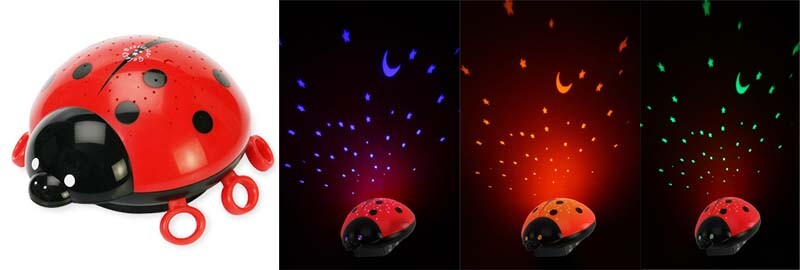 Das Nachtlicht Starlight in sympathischem Käferdesign ist nicht nur im Kinderzimmer ein Blickfang. Das Gerät projiziert einen faszinierenden Sternenhimmel an die Decke oder an die Wand des abgedunkelten Zimmers und sorgt damit für eine angenehme Grundhelligkeit. Es stehen die Farben gelb, grün und blau bzw. automatischer Farbenwechsel zur Verfügung. Das Gerät kann jederzeit ausgeschaltet werden; andernfalls sorgt eine Automatik für eine Abschaltung nach etwa 45 min. Der Energiebedarf ist aufgrund moderner LED-Technologie sehr gering. Dank Batteriebetrieb kann das Starlight auch sehr bequem unterwegs oder beim Camping für den „heimischen“ Sternenhimmel sorgen.