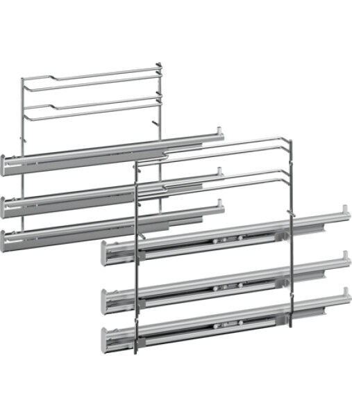 Teleskop-Vollauszug 3-fach, prolysefähig, mit den Auszugsschienen in Höhe 1, 2 und 3 kann das Zubehör aus dem Backofen herausgezogen werden, ohne dass es kippt.