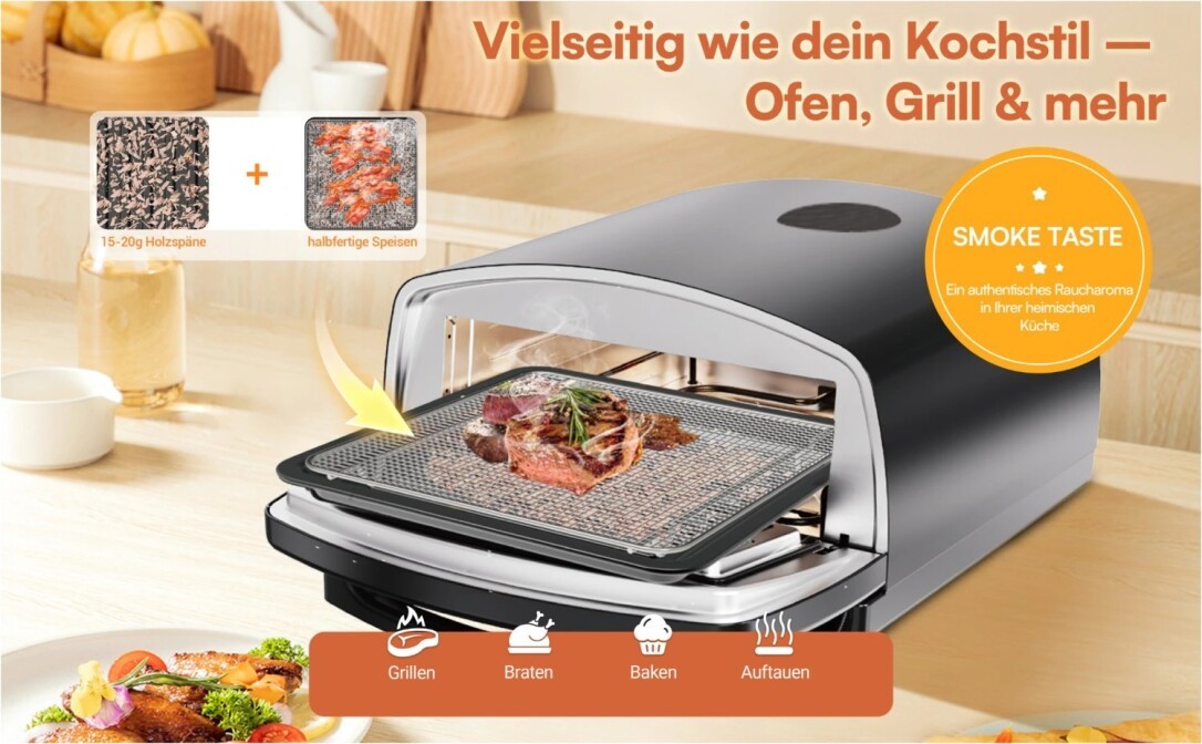 Mit diesem hochwertigen Multifunktions-Pizzaofen holst du dir italienisches Lebensgefühldirekt nach Hause. Das elegante Design fügt sich harmonisch in jede moderne Küche ein, während die leistungsstarke Technik für knusprige Ergebnisse in Rekordzeit sorgt.