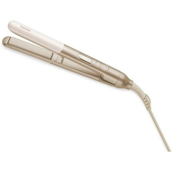 Das abgerundete Gehäuse erleichtert das Stylen verschiedener Frisuren. Zusätzliche Funktionen wie die Tastensperre, Abschaltautomatik nach 30 Minuten, Aufhängeöse und die hitzebeständige Aufbewahrungstasche bieten Komfort und Sicherheit. Mit einer Größe von 31,0 x 3,2 x 4,0 cm und einem Gewicht von 400 g ist der Haarglätter kompakt und leicht.