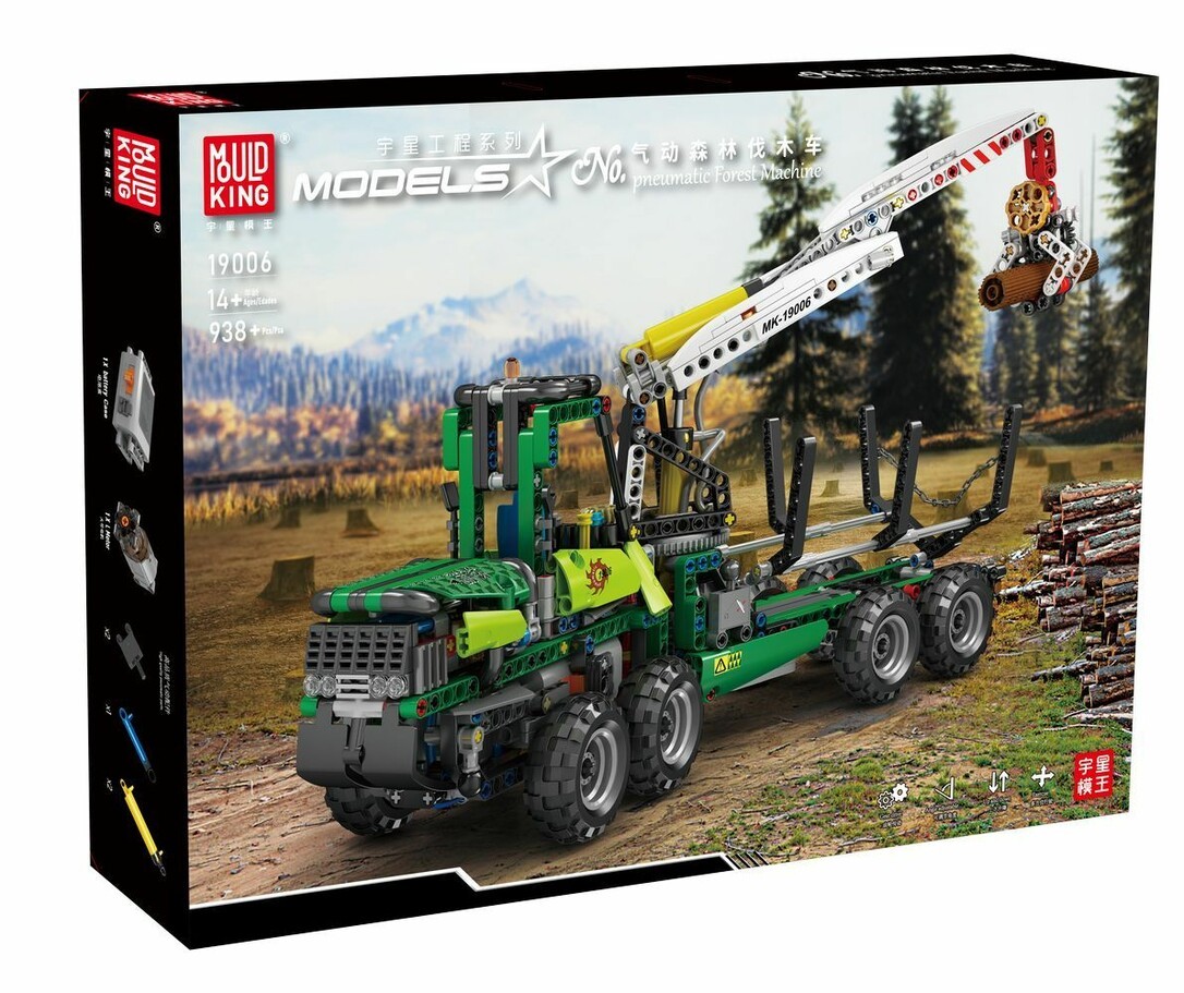 Mould King 19006 ist ein umfangreiches Klemmbaustein#Set zum Bau einer detailreichen Forstmaschine mit Greifarm. Der anspruchsvolle Aufbau bietet intensiven Bauspaß und viele realitätsnahe Funktionen wie bewegliche Ausleger, drehbare Kabine und fein ausgearbeitete Fahrzeugdetails. Die stabile Konstruktion sorgt für ein überzeugendes Gesamtbild. Nach dem Zusammenbau eignet sich das Modell ideal als hochwertiges Ausstellungsstück für Sammler und Fans von Forst# und Nutzfahrzeugen.