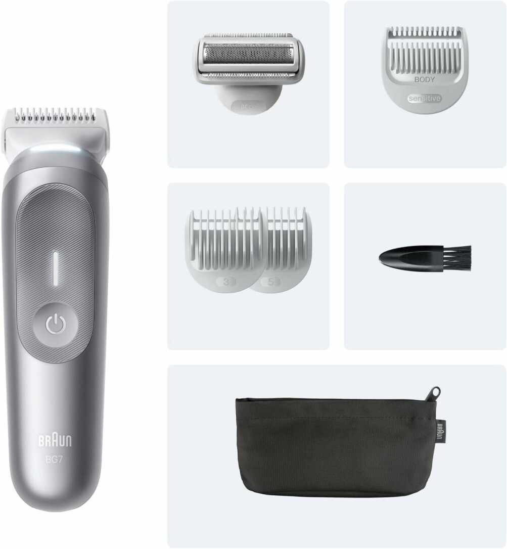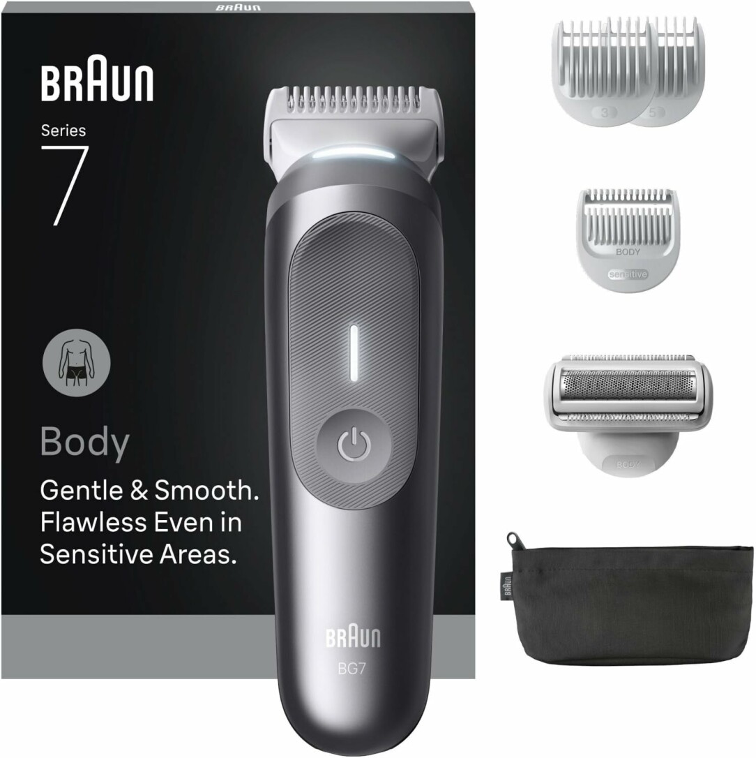 PRÄZISE KÖRPERPFLEGE: Der Braun Series 7 Bodygroomer ermöglicht eine sanfte und gründliche Körperhaarentfernung mit verschiedenen Aufsätzen für unterschiedliche Körperzonen