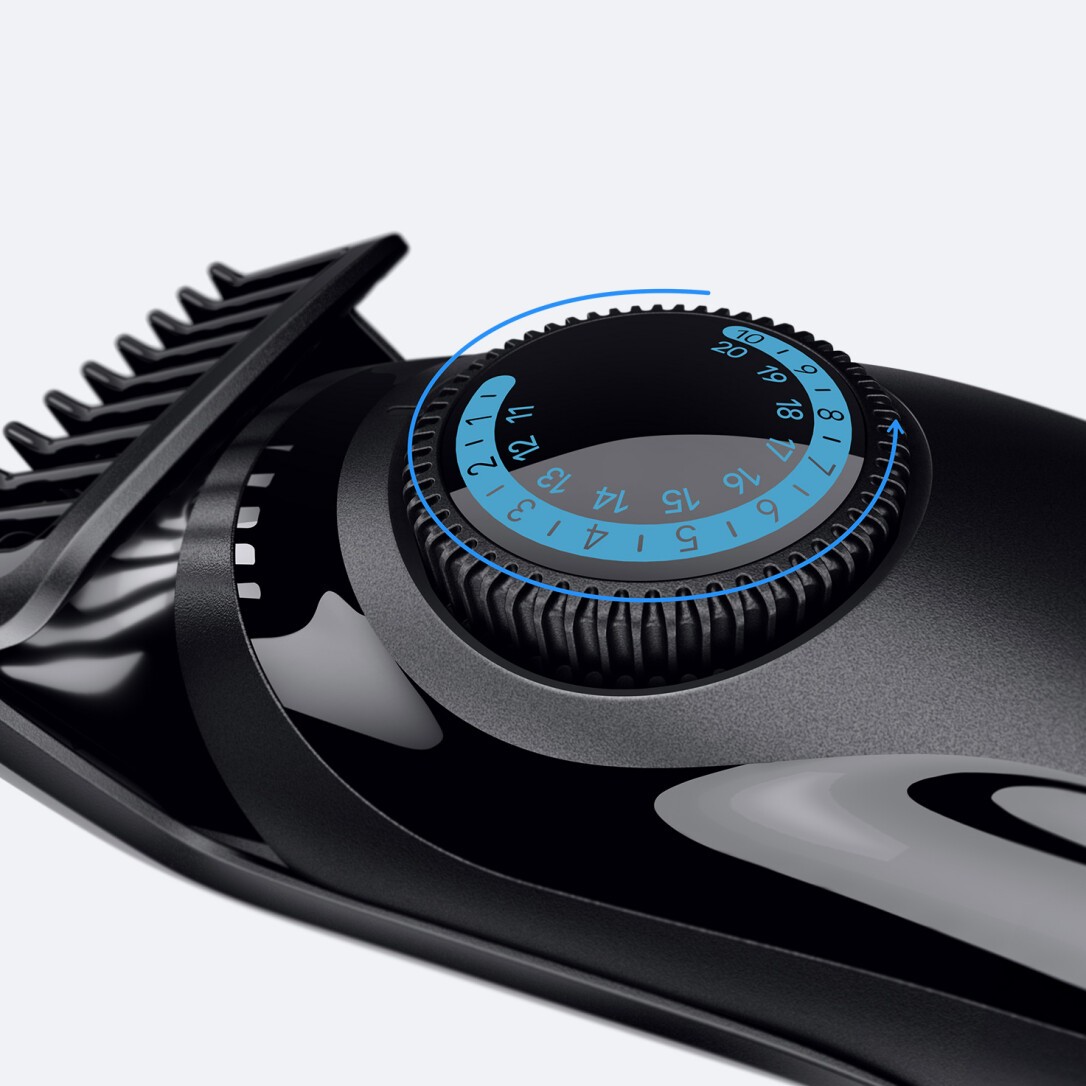 Individuelle Stylingkontrolle: Mit dem Präzisionsrad und 40 Längeneinstellungen in 0,5-mm-Schritten behältst du immer die volle Kontrolle über deinen Look.