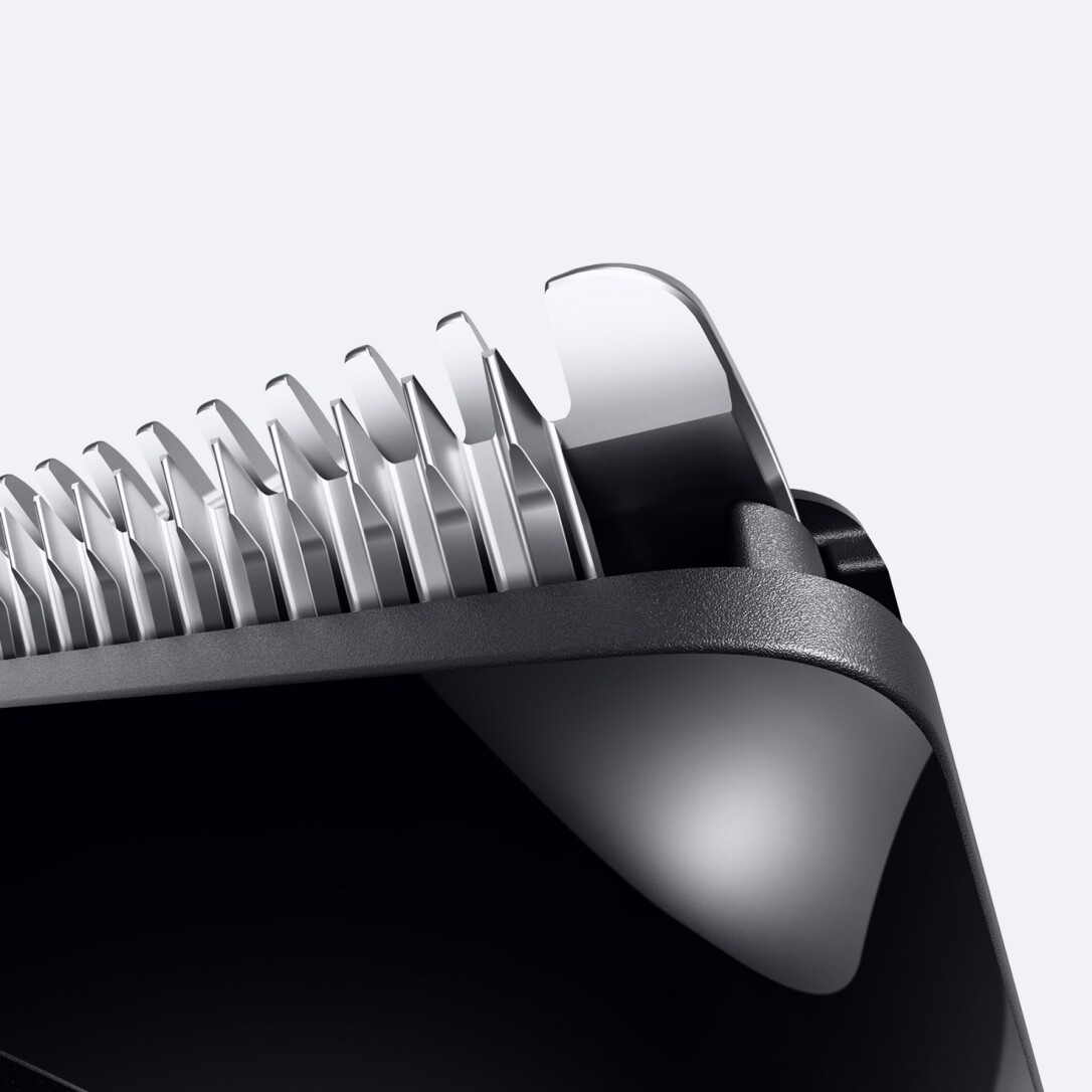 Überzeugende Ergebnisse bei jedem Einsatz: Dank der ultrascharfen Klingen erfasst der Trimmer selbst die widerspenstigsten Haare und sorgt für einen gleichmäßigen, effizienten Schnitt.