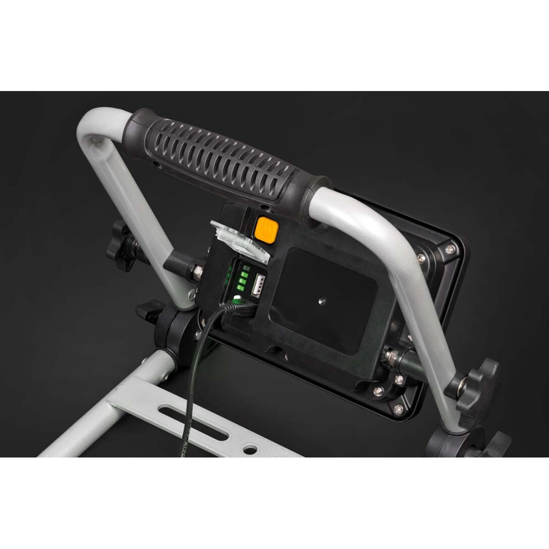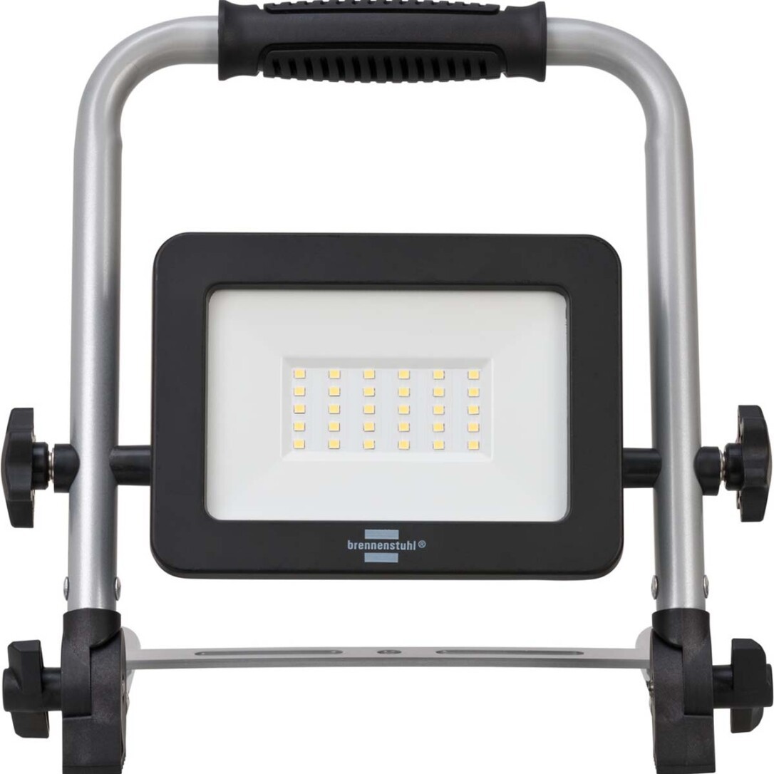 Die wiederaufladbare LED-Arbeitsleuchte EL 2000 MA mit 20 W Leistung eignet sich dank der Schutzklasse IP54 (staub- und spritzwassergeschützt) sowohl für den Einsatz im Innen- als auch im Außenbereich, wie z.B. für diverse Heimwerker- und Handwerkerarbeiten, die im oder um das Haus stattfinden. Der tragbare Floodlight lässt sich stufenlos schwenken und arretieren und lässt sich dank seines klappbaren Rahmens platzsparend verstauen und transportieren. Nicht nur das Aluminiumgehäuse ist äußerst robust, sondern auch der stabile Stahlrohrrahmen und die Feststellschrauben. Darüber hinaus überzeugt der wiederaufladbare Spotlight mit folgenden Features:• Geeignet für die Montage auf brennenstuhl-Stativen®