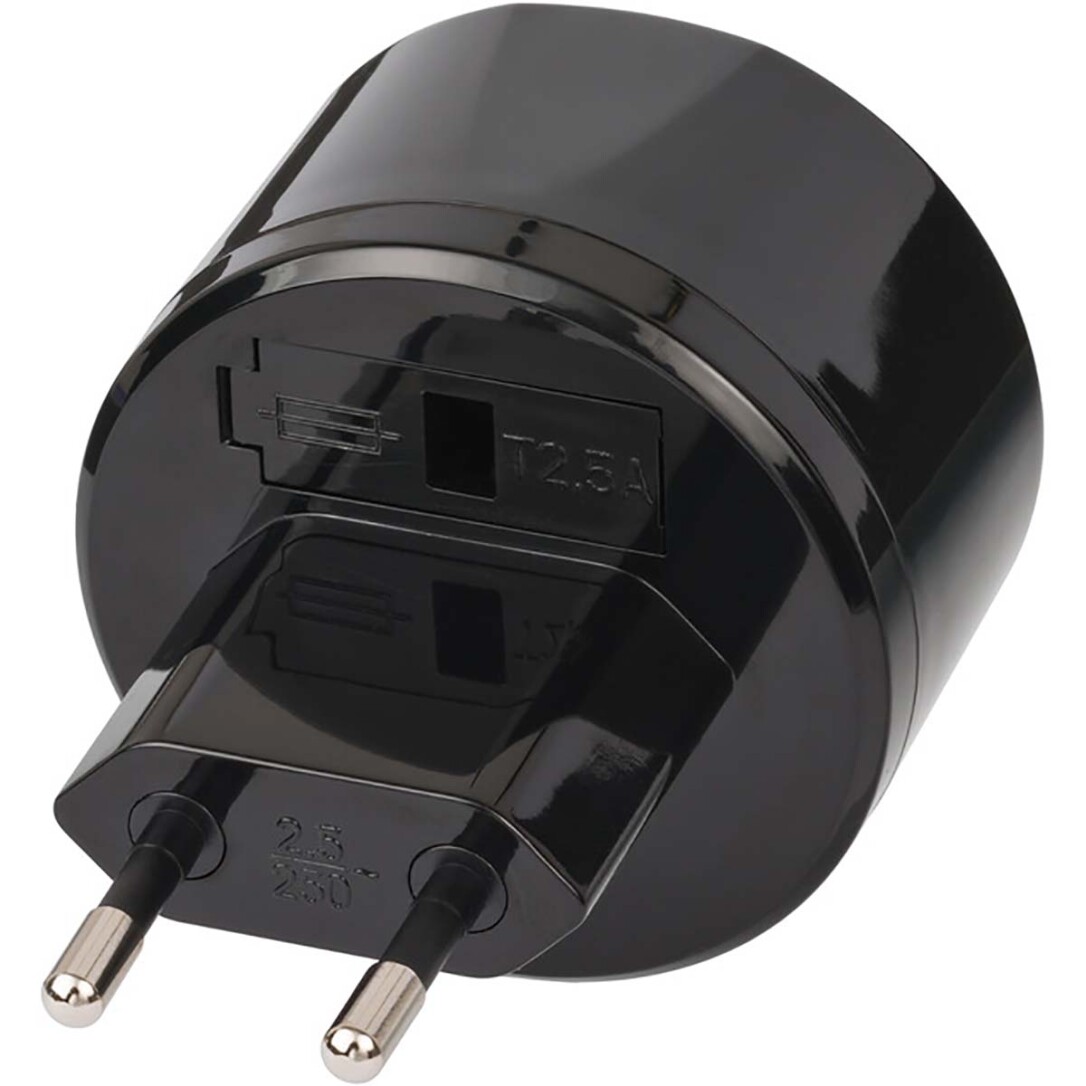 Der Reisestecker in der Farbe schwarz für die Steckdose ist ideal zum Reisen und für den Urlaub.