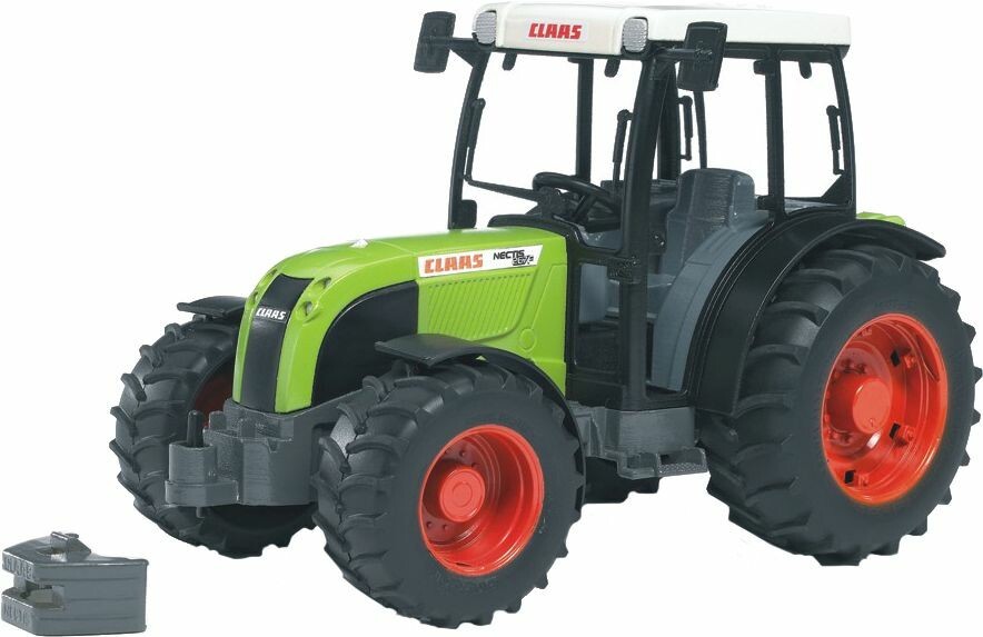 Der Landtechnikspezialist Claas bietet seit kurzem ein komplettes Programm an Traktoren an. Eine seiner Traktorbaureihen ist die Nectis-Serie, hauptsächlich für den Einsatz im Wein- und Obstanbau konzipiert. Ausgestattet mit leistungsstarken Motoren bietet das spezifische Design des Chassis und ein extrem starker Lenkeinschlag bei eingeschränkten Platzverhältnissen eine hohe Manövrierfähigkeit auch im schwierigen Gelände. Aufgrund der großflächigen Verglasung der Kabine hat der Traktorlenker dabei alles im Blick. BRUDER rundet mit der Einführung seines Modells dieses Traktortyps im Maßstab 1:16 die überaus erfolgreiche Claas-Produktreihe ab. Natürlich verfügt auch dieser Traktor über die brudertypischen Eigenschaften und kann mit allen landwirtschaftlichen Anbaugeräten aus dem BRUDER Sortiment kombiniert werden. Das Modell ist in der Basisausführung ohne Frontlader, (Art.-Nr. 02110) und in der erweiterten Version mit Frontlader, (Art.-Nr. 02111) erhältlich. Zum Nachrüsten passt der Frontlader, (Art.-Nr. 02009) der Kleintraktoren.