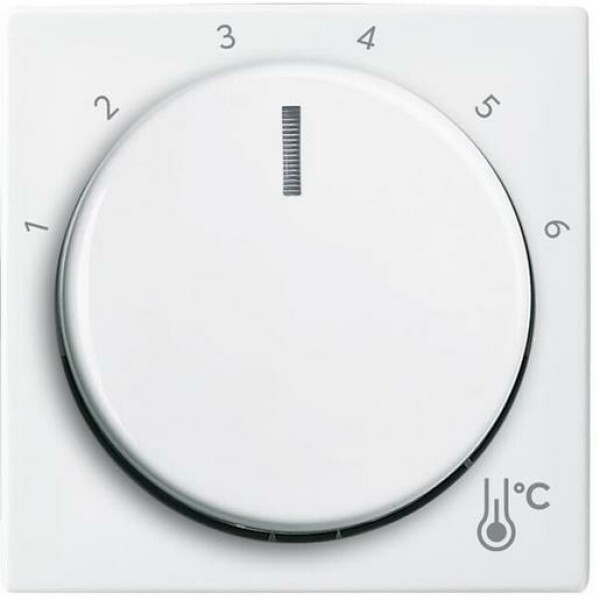 Die Zentralscheibe dient als Bedienelement für diverse Raumtemperaturregler. Sie ist als Drehknopf ausgeführt und verfügt über eine aufgedruckte Skala von 1 bis 6 zur einfachen und präzisen Temperatureinstellung. Das Bauteil ist speziell für die Verwendung mit den Raumtemperaturregler-Einsätzen der Typen 1094 U-101, 1097 U-101 und 1099 UHK-101 konzipiert. Diese Variante ist in der Farbe Alpinweiß ausgeführt und passt zur Designlinie Busch-balance SI.