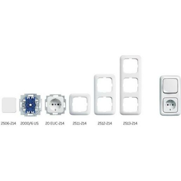 Das BUSCH-JAEGER Reflex SI Paket besteht aus: 30x Wechsel-Wippen (2506-214), 30x Wechselschalter-Einsätze (2000/6 US), 150x Schuko-Steckdosen-Einsätze (20 EUC-214), 20x Abdeckrahmen 1-fach (2511-214), 50x Abdeckrahmen 2-fach (2512-214) und 20x Abdeckrahmen 3-fach (2513-214).