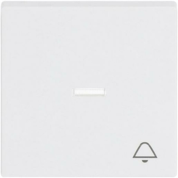 Die einteilige Wippe mit dem Aufdruck eines Klingel-Symbols dient als Abdeckung für Unterputz-Schalter und -Taster. Eine integrierte, transparente Kalotte ermöglicht die Aufnahme eines Leuchtelements, um eine optische Rückmeldung zu gewährleisten, was sie ideal für den Einsatz in Tür- und Rufanlagen macht. Diese Ausführung ist in der Farbe Studioweiß gehalten.