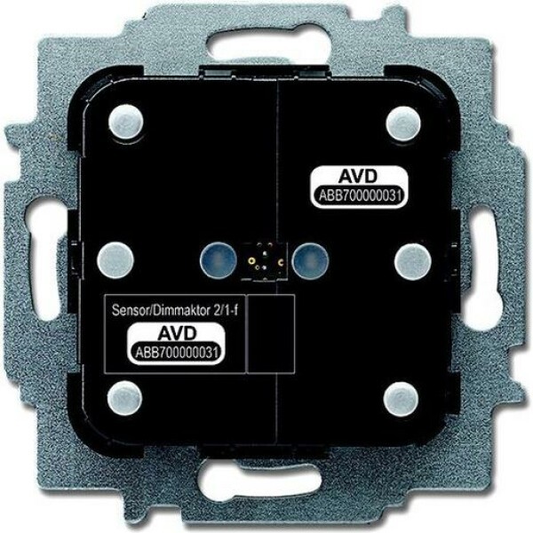 Sensor- / Dimmaktor zum Dimmen von 230 V~ Verbrauchern. Mit integriertem Universal-Dimmaktor zur Steuerung von LEDs, Glühlampen, 230 V-Halogenglühlampen, Niedervolt-Halogenlampen mit konventionellen oder elektronischen Transformatoren und dimmbaren Halogen-Energiesparlampen. Für dimmbare Retrofit-LED-Leuchtmittel (LEDi). Dimmfunktion ist auch ohne vorherige Programmierung gegeben (linker Sensorkanal vorkonfiguriert). Konfiguration kann nachträglich über das Web-Interface geändert werden (Gruppen, Szenen, …). Rechter Sensorkanal zur Programmierung von weiteren Funktionen (Gruppen, Szenen, …). Nur in Kombination mit Busch-free@home® 2-fach Wippen zu verwenden. Der Busanschluss erfolgt über die beiliegende Busklemme. Bei der Installation in die Unterputzdose ist auf eine räumliche Trennung zwischen der Bus- und der 230 V-Installationsleitung zu achten! Bei Unterschreiten des Mindestabstands z.B. Elektronikdosen oder Isolierschläuche verwenden. Bedienelemente: Tastkontakte oben/unten Anzeigeelemente: LED als Orientierungslicht oder zur Anzeige des Schaltzustandes.