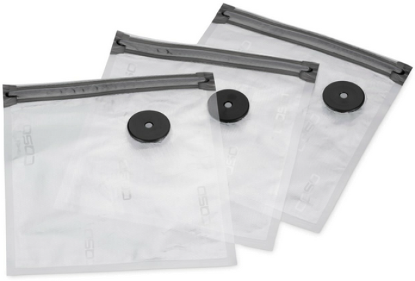 Vakuum ZIP-Beutel 20 x 23 cm | Materialstärke 150 μm: Besonders stark und reißfest – auch bei spitzen Gegenständen, wie z.B. Knochen oder Gräten | Stabile Rippenstruktur für 100% Dichtigkeit | Schutz vor Gefrierbrand | Längere Haltbarkeit der Lebensmittel: Bis zu 8x länger frisch | Mikrowellengeeignet (bis 12 min bei 650 Watt*) | Spülmaschinenfest und wiederverwendbar | SousVide-geeignet: Kochfest bis 100 °C für max. 8 Std. Mit gratis Food Manager Stickern zur Organisation und Lagerung Ihrer Lebensmittel. Zur Verwendung mit dem CASO ZIP-Adapter und Vakuumschlauch (nicht im Lieferumfang enthalten), sowie dem CASO Vacu OneTouch.
