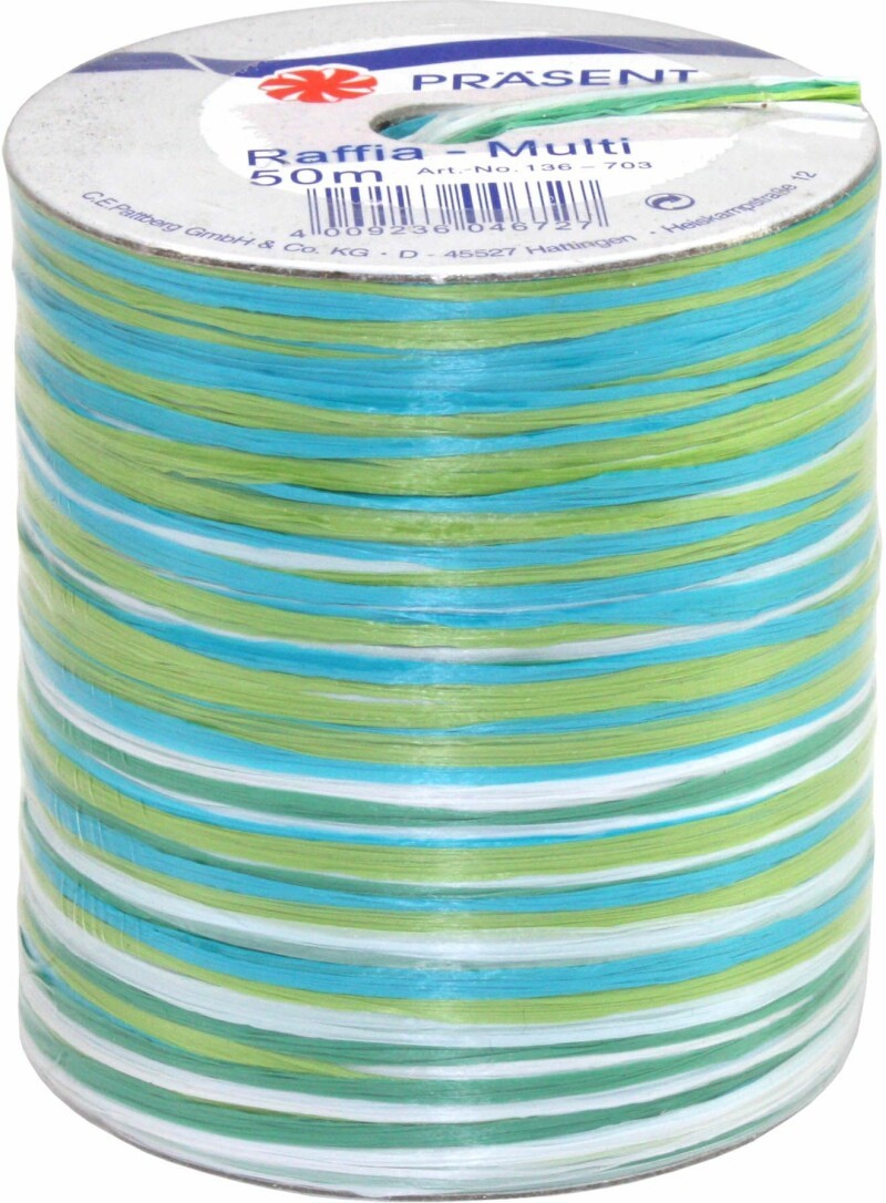 Raffiarolle Türkis/Weiß/Grün 50 m