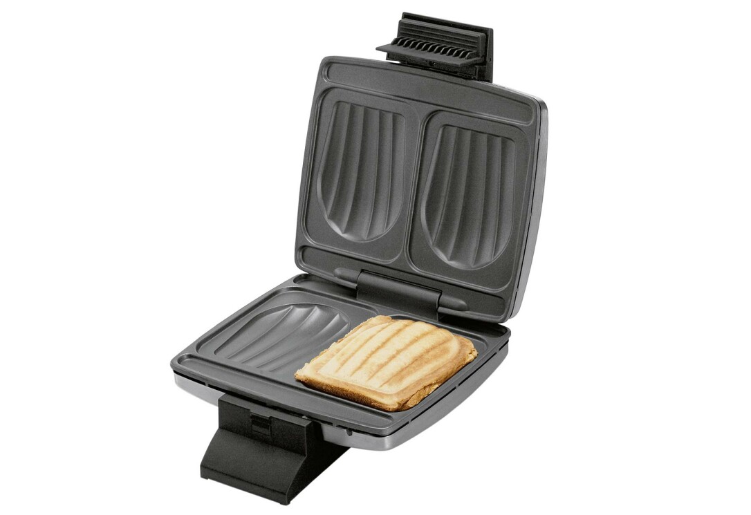 Der Cloer Sandwichmaker 6235 silber hat eine Leistung von 930 Watt. Das Gerät ist aus mattiertem Edelstahl gefertigt. Die Temperatur des Geräts wird automatisch geregelt. Damit die fertigen Sandwiches problemlos aus dem Sandwichmaker entfernt werden können, ist das Gerät mit einer Antihaftbeschichtung ausgestattet. Das fertige Toast hat nach dem toasten eine Muschelform. Dieses Gerät kann zeitgleich 2 Sandwiches zubereiten. Zudem verfügt es über eine Kontrollleuchte.