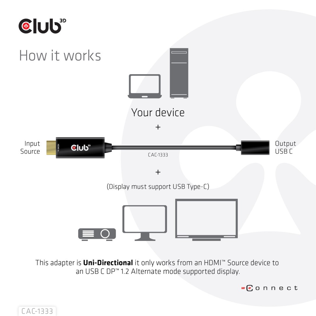Club 3D Club3D Adapter HDMI 2.0 > USB-C 4K60Hz aktiv St/Bu retail (CAC-1333)