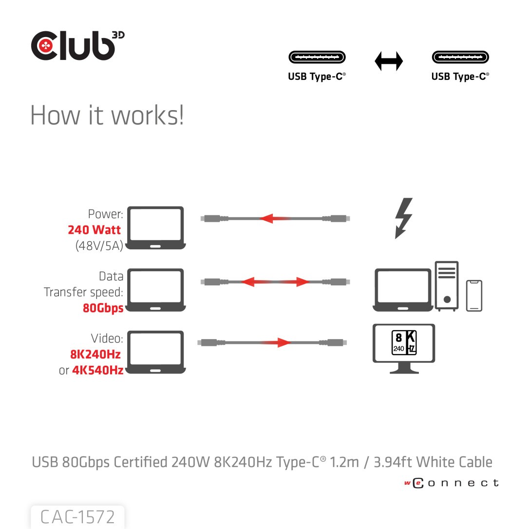 Club 3D Club3D Kabel USB-C 80Gbps zertifi. PD240W/8K240Hz 1,2m weiß retail (CAC-1572)