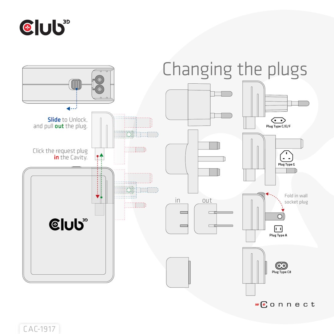 CLUB3D CAC-1917. Gesamtleistung: 140 W. Gewicht der Papier-/Kartonverpackung: 38 g, Gewicht der Plastikverpackung: 6 g. Warentarifnummer (HS): 8504 4095