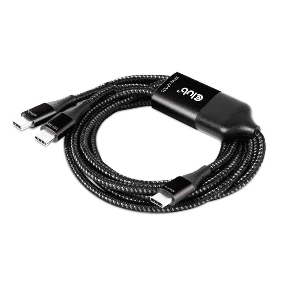 CLUB3D USB Type-C, Y charging cable to 2x USB Type-C max. 100W, 1.83m/6ft M/M, 1,83 m, USB C, 2 x USB C, Schwarz