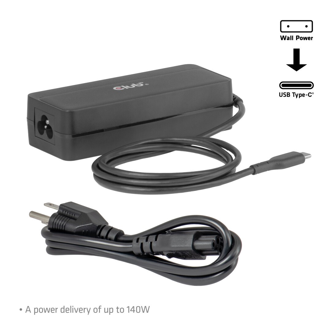 CLUB3D USB-C® Laptop-Ladegerät 140W, AC, 1 m, Schwarz