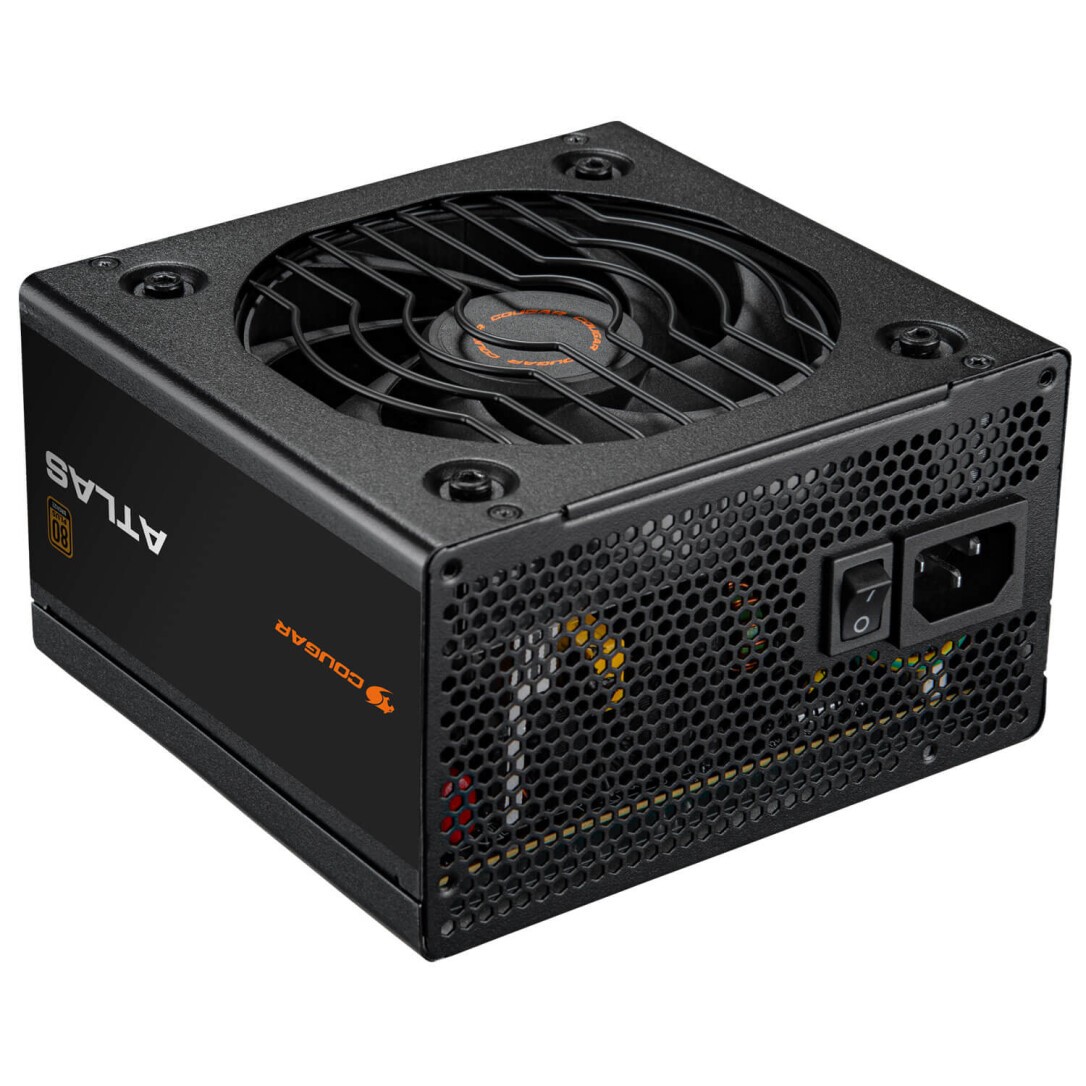 COUGAR Netzteil ATLAS 750W ATX / 80 Plus Bronze. Gesamtleistung: 750 W, AC Eingangsspannung: 100 - 240 V, AC Eingangsfrequenz: 50/60 Hz. Motherboard Anschlussstecker: 20+4 pin ATX, Stromkabellänge Motherboard: 55 cm, Periphere (Molex) Netzkabellänge: 450 mm. Zweck: PC / Server, 80 Plus Zertifizierung: 80 PLUS Bronze. Produktfarbe: Schwarz, Kühlung: Aktiv, Lüfterdurchmesser: 12 cm. Konformitätsbescheinigungen: CCC, CE, EAC, Eidgenössische Kommunikationskommission (FCC), RoHS