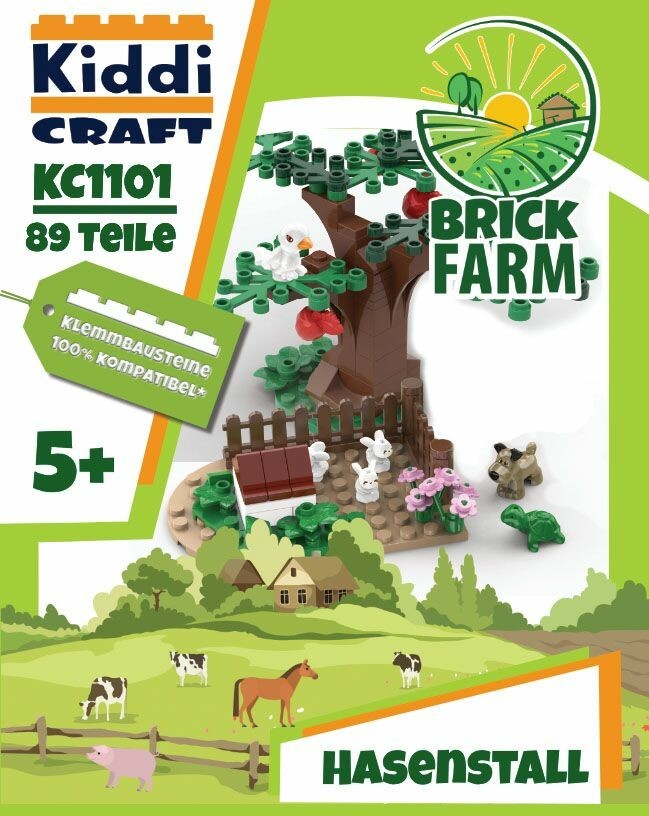 Kiddicraft KC1101 Hasenstall Bau dir deinen kleinen Streichelzoo und erweitere deine Klemmbausteinlandschaft um dieses wunderschöne Set. Es enthält: - insgesamt 86 Teile - 3 Hasen - 1 Hund - 1 Vogel - 1 Schildkröte Sehr gute Qualität der Bausteine 100% kompatibel mit den Klemmbausteinen des Marktführers Gut verständliche Bauanleitung beiliegend Hergestellt in China Achtung! Nicht für Kinder unter 3 Jahren geeignet, da Kleinteile verschluckt werden können. Erstickungsgefahr!