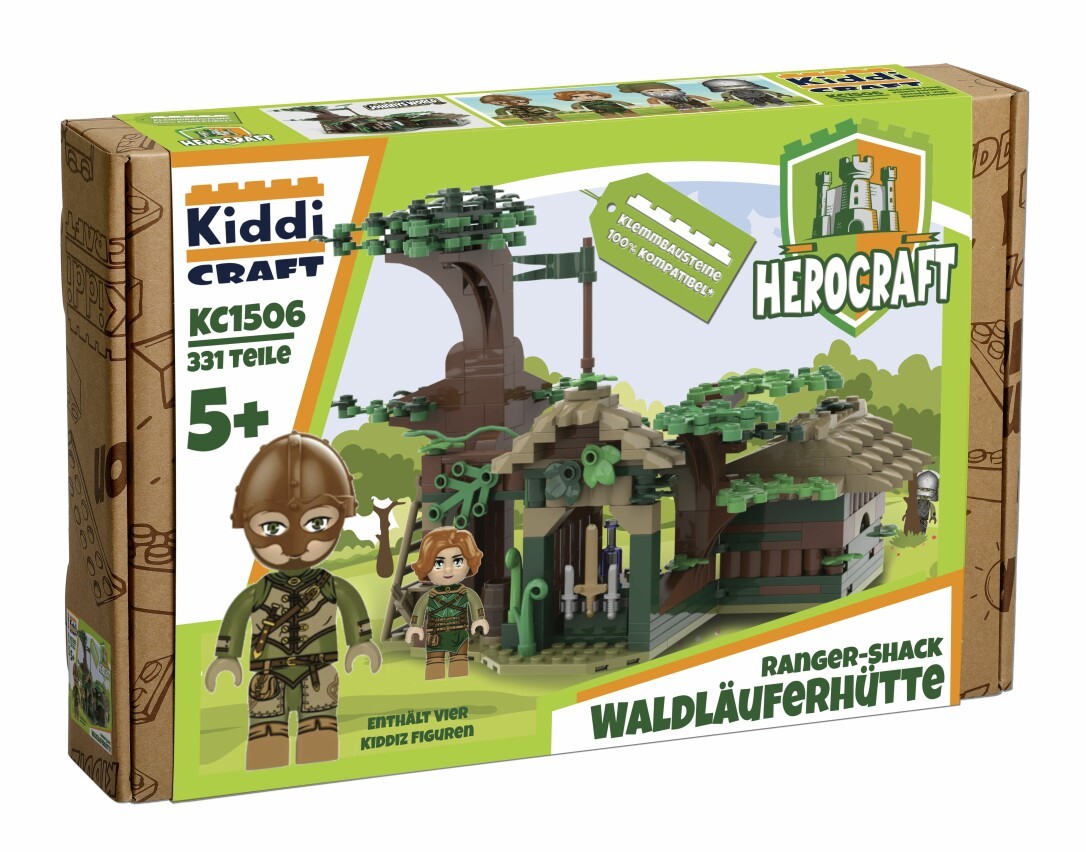 Kiddicraft KC1506 Waldläuferhütte Tief versteckt im dunklen Wald von Herocraft steht die Waldläuferhütte. Rückzugsort eines alten Magiers, Unterschlupf der Waldläufer und immer besteht die Gefahr von den Orkhorden überfallen zu werden. Das Gebäude ist zur besseren Bespielbarkeit aufklappbar. Das Set enthält: - insgesamt 331 Teile - 4 KIDDIZ Figuren (2 Waldläufer, 1 Magier, 1 Ork) mit viel Zubehör, zB 2 extra Helmen - bedruckte Teile, keine Aufkleber Sehr gute Qualität der Bausteine 100% kompatibel mit den Klemmbausteinen des Marktführers Gut verständliche Bauanleitung beiliegend Designed in Deutschland - Hergestellt in China Achtung! Nicht für Kinder unter 3 Jahren geeignet, da Kleinteile verschluckt werden können. Erstickungsgefahr!