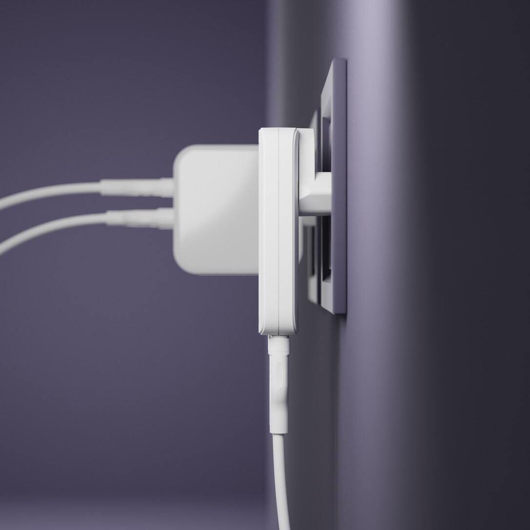 Dieses schlanke, effiziente und unbestreitbar elegante Ultra Slim Wall Charger (20W USB-C + 18W USB-A) ist eine Kombination aus Alltagskomfort und modernem Design. Hergestellt aus 100 % GRS-zertifiziertem, recyceltem Kunststoff und vollständig recycelbar, ist es nicht nur eine stilvolle Wahl für Ihre technischen Geräte, sondern auch besser für die Umwelt. Mit ihrem raffinierten, ultradünnen Profil fügt sie sich mühelos in jedes Interieur ein und eignet sich perfekt für designbewusste Haushalte, Arbeitsbereiche oder Reisekonfigurationen. Features: - Ultraflaches, platzsparendes Design - USB-C (20W) + USB-A (18W) für schnelles, gleichzeitiges Laden - GaN-Technologie für kompakte, energieeffiziente Leistung - Überhitzungsschutz - Kombinierte Leistung: Max. 20 W, wenn beide Anschlüsse verwendet werden - Schnelles und sicheres Aufladen von Telefonen, Kopfhörern und mehr* - Mit EU- und integriertem US-Stecker - Unterstützt die wichtigsten Ladeprotokolle: PD3.0, PPS, QC3.0/2.0, AFC, FCP und mehr - 5 *Um schnell aufzuladen, stellen Sie sicher, dass Ihr Gerät das schnelle Aufladen unterstützt und dass das Ladegerät die Mindestleistungsanforderungen Ihres Geräts erfüllt.