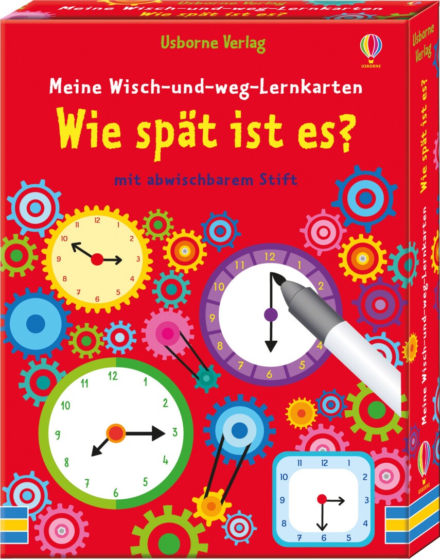 Mithilfe dieser abwischbaren Karten lernen Kinder spielend leicht analoge und digitale Uhrzeiten zu lesen. Die unterschiedlichen Farben der Karten zeigen an, ob viertel, halbe, volle Stunden oder andere wichtige Zeitangaben gefragt sind. Auch das Einzeichnen und Aufschreiben der Uhrzeiten kann mit dem beiliegenden Stift immer wieder aufs Neue geübt werden.