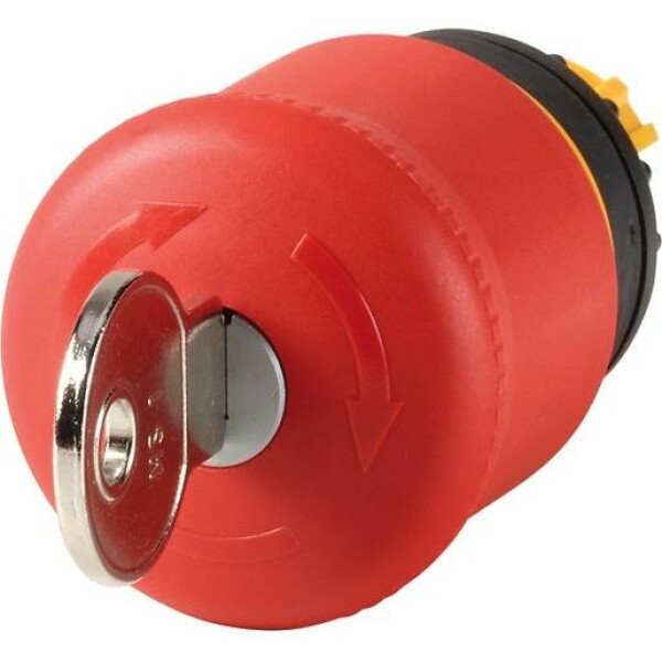 NOT-AUS-Pilzschlüsseltaste rot, Tastensockel gelb, Rückstellung durch Ziehen, System RMQ, Fronteinbau, Durchmesser 22,3mm, Cliptechnik, Frontringfarbe Titan, Schutzart IP66, 69K, Einzelschließung MS1