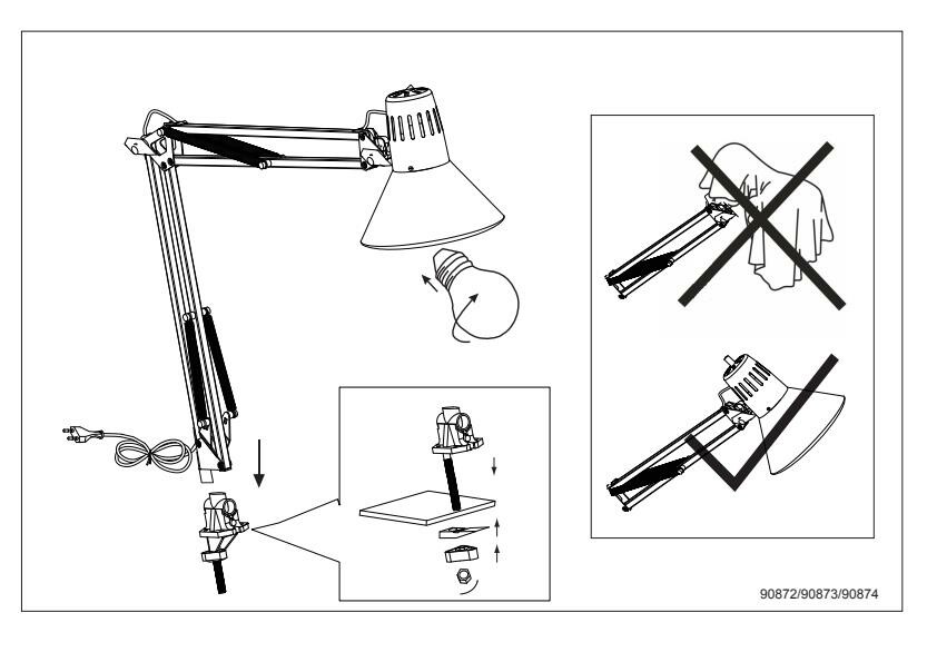 • Die Leuchte nicht mit Wasser oder anderen Flüssigkeiten in Berührung bringen oder gar inWasser tauchen.