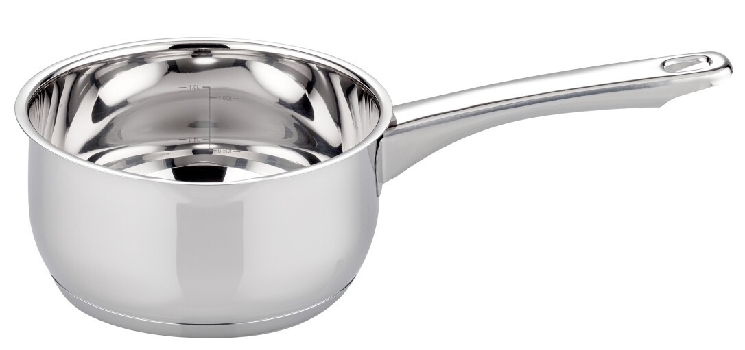 ELO Basic Topfset Galactica 15-teilig - Das 15-teilige Kochtopf-Set Galactica, aus dem ELO Basic Programm, bietet nicht nur die Möglichkeit der Nutzung auf Induktionsherden, sondern auch eine Reihe von praktischen Eigenschaften. Die zylindrische Form der Edelstahltöpfe mit Abgießrand gewährleistet ein tropffreies Ausgießen, während die hitzereduzierenden Hohlgriffe aus Edelstahl ein angenehmes Griffgefühl bieten. Innen überzeugen die Töpfe mit einer hochglanzpolierten Optik und einer Volumenskala für einfaches Abmessen von Flüssigkeiten. Die Glasdeckel mit stoßfestem Edelstahlrand und poliertem Edelstahlknopf ermöglichen eine einfache Überwachung des Kochvorgangs. Der energiesparende Kapselboden gewährleistet eine gleichmäßige Wärmeverteilung und ist für alle Herdarten geeignet, einschließlich Induktion. Zusätzlich zu den Töpfen aus Edelstahl beinhaltet das Set drei Pfannen aus Aluminium, in verschiedenen Größen, mit einer langlebigen keramischen Versiegelung mit Antihafteffekt. Der Stapelschutz schützt vor Beschädigungen, besonders am Rand und erhöht die Lebensdauer des Kochgeschirrs. Schaumlöffel, Suppenkelle, Saucenlöffel und Spaghetti-Löffel eignen sich perfekt zum Kochen und Servieren. Inhalt: je 1x Schaumlöffel, Suppenkelle, Saucenlöffel und Spaghetti-Löffel, 2x Pfannenschoner, 1x Schüssel 2,5 l, Ø 20 cm, H 12 cm, 1x Kochtopf mit Glasdeckel 1 l, Ø 14 cm, H 8,3 cm, 1 x Kochtopf mit Glasdeckel 1,8 l, Ø 18 cm, H 8,7 cm, 1x Kochtopf mit Glasdeckel 5,5 l, Ø 24 cm, H 13,8 cm, 1x Stielkasserolle mit Ausguss 1,2 l, Ø 16 cm, H 7,5 cm, 1x Milchtopf 1,6 l, Ø 14 cm, H 12,3 cm, je 1 x Pfanne Ø 20 cm, Ø 24 cm, Ø 28 cm.