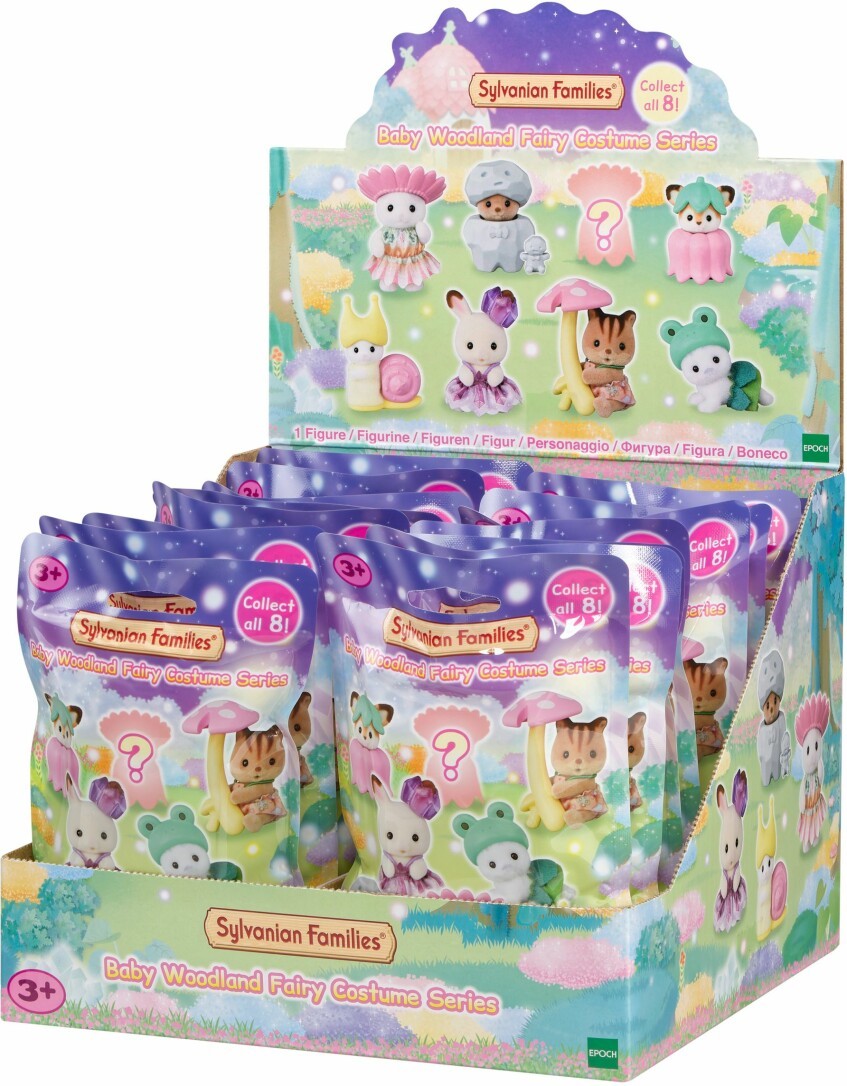 Zauberhafte Überraschungen! Mit den Sylvanian Families Sammelfiguren Waldfeen Babyfreunde wird das Spielen, Sammeln und Tauschen zum magischen Erlebnis. In jeder Überraschungstüte wartet eine von 8 süßen, samtweich-beflockten Babyfiguren und vielleicht sogar die besondere Geheimfigur! Jedes Baby trägt ein kreatives, handgemachtes Waldkostüm, das sich an- und ausziehen lässt: vom Milchkatzen Baby mit Blumenkranz über das Seehund Baby mit Froschhut bis hin zum Walnuss-Eichhörnchen mit Pilzschirm oder dem Seeotter Kuschelbaby mit Felskostüm und Felsfreund. Liebevolle Details und fröhliche Gesichtsausdrücke machen jede Figur einzigartig. Mit einer Größe von ca. 45 cm eignen sich die Waldfeen Babyfreunde perfekt für kleine Abenteuer, Sammlerfreude und Rollenspiele. In Kombination mit dem Funkelnden Waldfeenschloss (5857, separat erhältlich) entstehen noch größere fantasievolle Feenwelten. Einfach auspacken und verzaubern lassen. Welche Waldfee wird wohl in der Tüte sein?