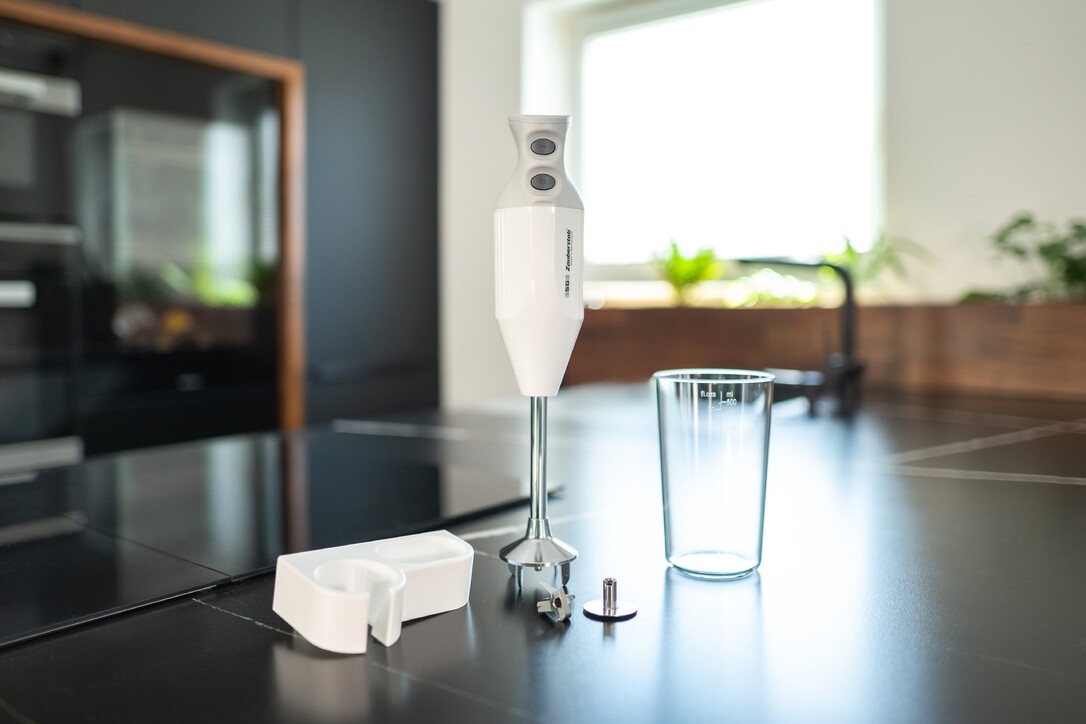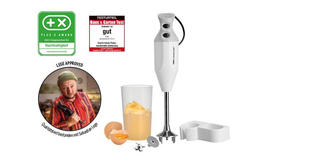 | Artikeleigenschaften | Twinschalter, Kurzzeitbelastung 5 Minuten, mit Aufsteck-Zentrierung, Multifunktionsmesser, Edelstahlmesser, Metallfuß |