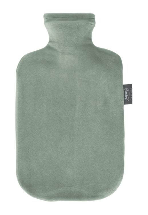 2,0 L Wärmflasche mit abnehmbarem Flauschbezug, Wärmflasche aus thermoplastischem Kunststoff, Bezug 93% Polyester & 7% Elasthan in der Farbe grün