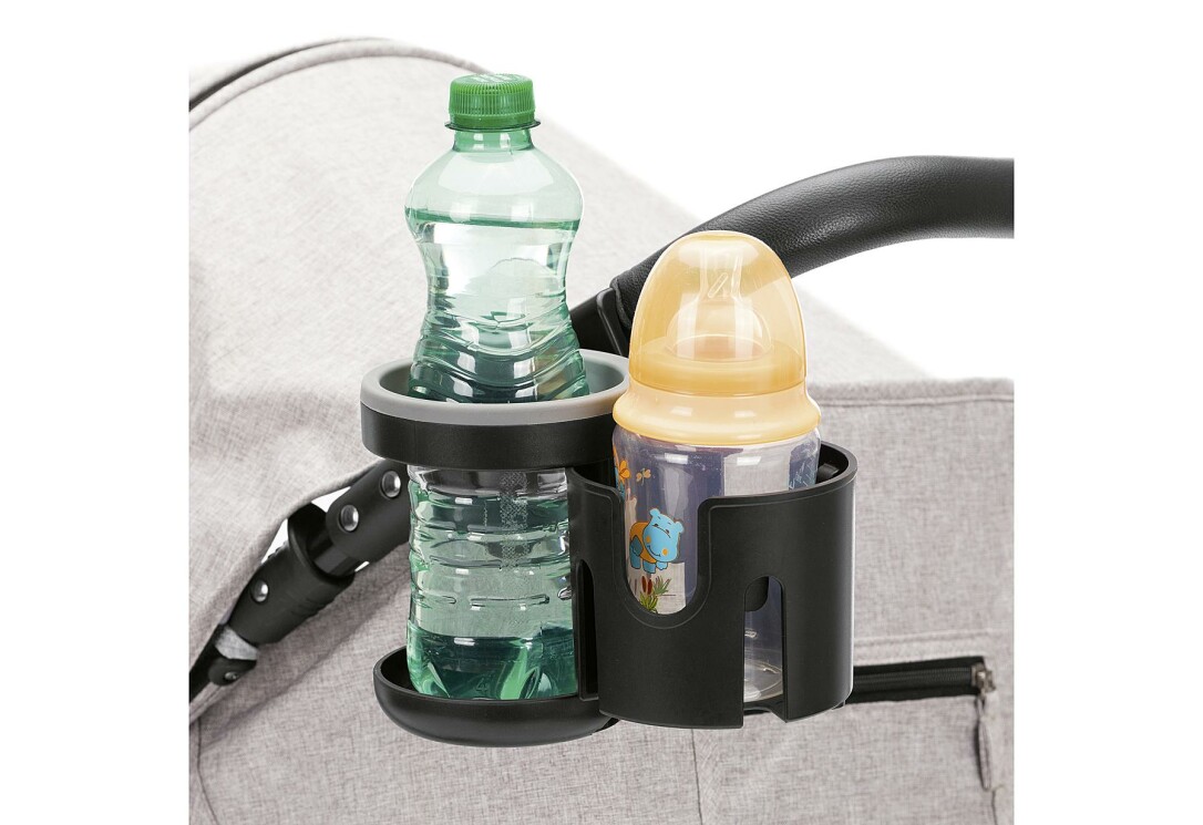 Flaschenhalter Duo. Mit unserem praktischen Flaschenhalter für Kinderwagen haben Sie unterwegs immer alles im Griff. Dank der 360° drehbaren Halterung können Sie bis zu 2 Flaschen sicher befestigen, damit Sie und Ihr Kind immer genug zu trinken haben.