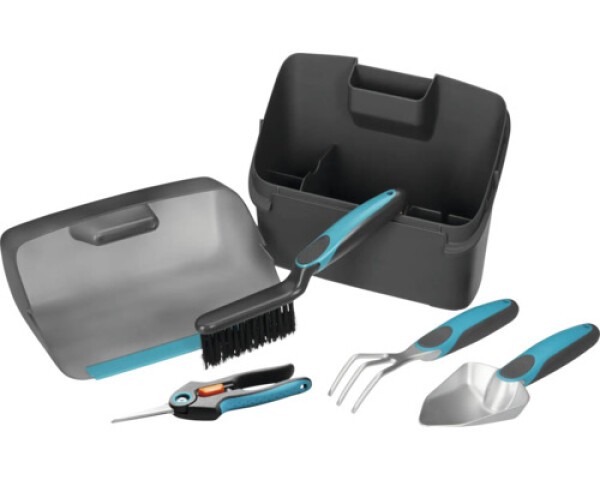 Lieferumfang beinhaltet: 1x Gardena city gardening Balkon-Box inkl. 1 x Pflanzenkelle, 1x Grubber, 1x Balkonschere, 1x Handbesen