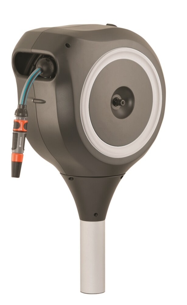 Durch einen leichten Zug am Schlauchende wird die integrierte Stahlfeder aktiviert und wickelt den Schlauch automatisch und zuverlässig auf. Die RollControl-Technologie sorgt für einen langsamen und sicheren Rückzug, egal wie weit der Schlauch abgerollt ist.