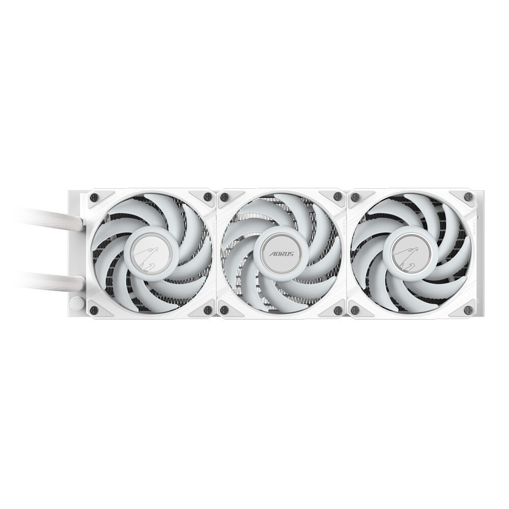 GIGABYTE AORUS WATERFORCE II 360 ICE AIO Flüssigkeits-CPU-Kühler - 3x120mm ARGB-Lüfter, Schiebe-in-Verriegelungsmechanismus, DAISY-CHAIN, kompatibel mit Intel LGA 1851 und AMD AM5. Typ: All-in-One-Flüssigkeitskühler, Lüfterdurchmesser: 12 cm, Maximum Luftdruck: 2,93 mmH2O. Produktfarbe: Weiß
