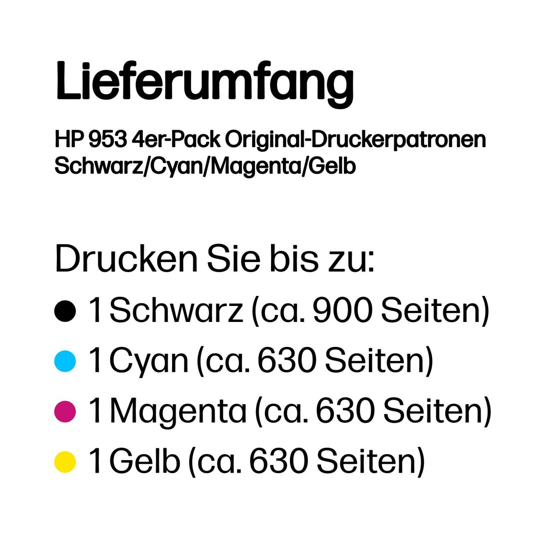 HP 953 4er-Pack Original-Druckerpatronen Schwarz / Cyan / Magenta / Gelb
