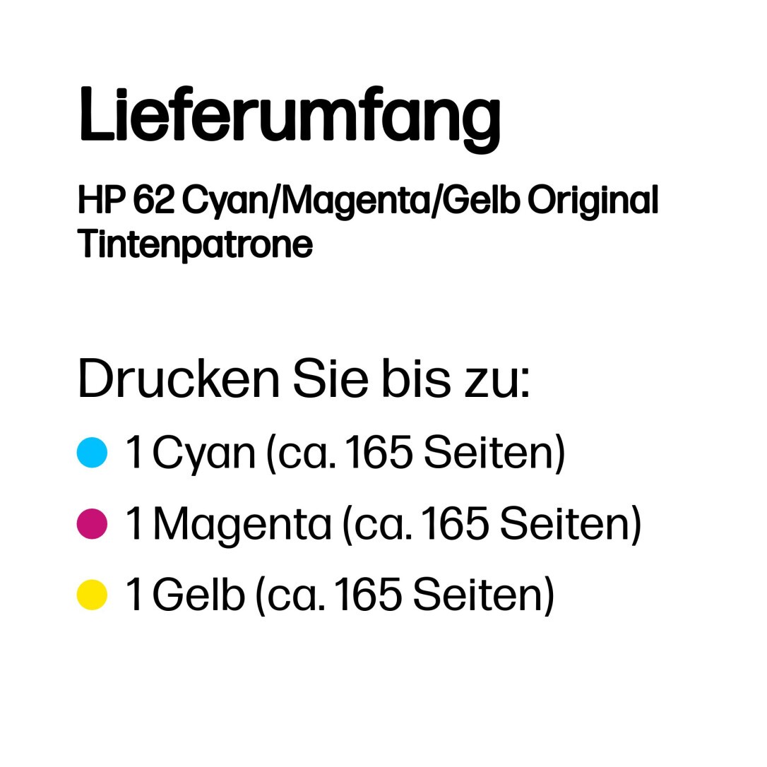 HP 62 Tintenpatrone, Cyan/Magenta/Gelb