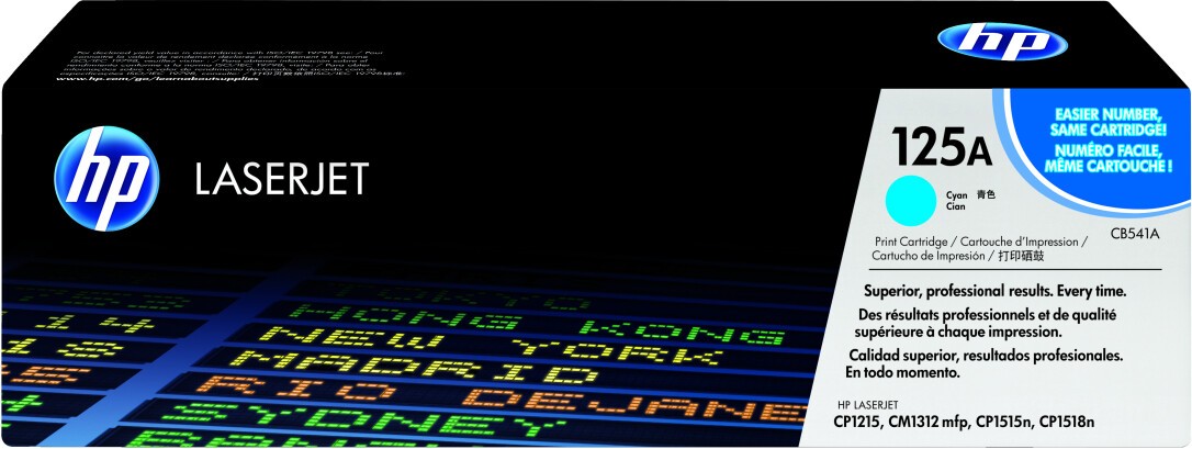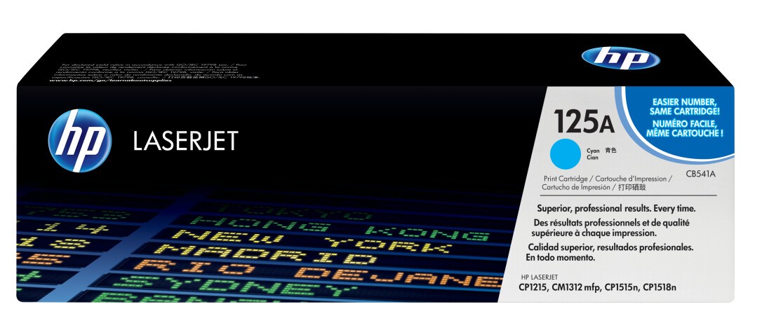 Die Color LaserJet CB541 A Druckkassette Cyan überzeugt durch Fotolaborqualität im eigenen Büro. Brillante, auffallende Farben, gestochen scharfe Texte und realistische Fotoqualität; so erzielt Ihre Firma die gewünschte Aufmerksamkeit.