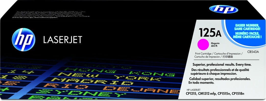 Die Color LaserJet CB543 A Druckkassette Magenta überzeugt durch Fotolaborqualität im eigenen Büro. Brillante, auffallende Farben, gestochen scharfe Texte und realistische Fotoqualität; so erzielt Ihre Firma die gewünschte Aufmerksamkeit.