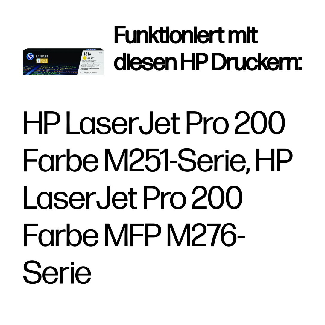 Die HP 131A LaserJet Tonerkassette gelb liefert Dokumente und Marketingmaterialien in professioneller Qualität – ob im Home-Office oder im Unternehmen. Vermeiden Sie Zeit- und Materialverschwendung und arbeiten Sie jederzeit produktiv. Die Kassetten wurden speziell auf Ihren Drucker abgestimmt.