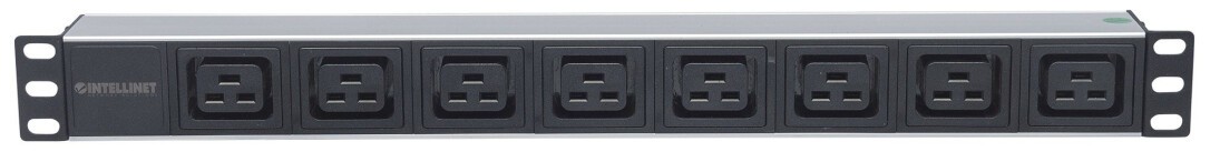 Intellinet 19" 8-fach Steckdosenleiste mit C19-Kaltgerätesteckdosen, PDU mit abnehmbarem Stromkabel (2 m) und rückseitigem C20-Stromeingang, 1 HE. Rack-Kapazität: 1U, Produktfarbe: Schwarz, Silber. Anzahl der AC-Ausgänge: 8 AC-Ausgänge, AC-Steckertypen: C19-Koppler. Kabellänge: 2 m. Nominale Eingang Spannung: 110 - 250 V, Stromstärke (maximal): 16 A. Breite: 485,2 mm, Tiefe: 45 mm, Höhe: 45 mm