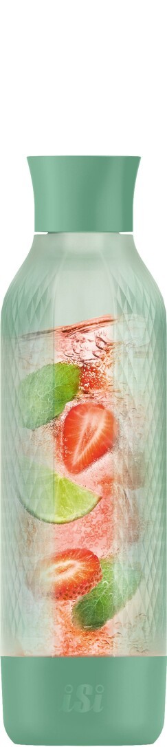 wiederbefüllbar, mit Füllstandsmarkierung und Schraubverschlusskappe, transparentes Flaschensleeve aus Silikon für optimalen Halt, nur für kalte Getränke geeignet, nicht spülmaschinengeeignet